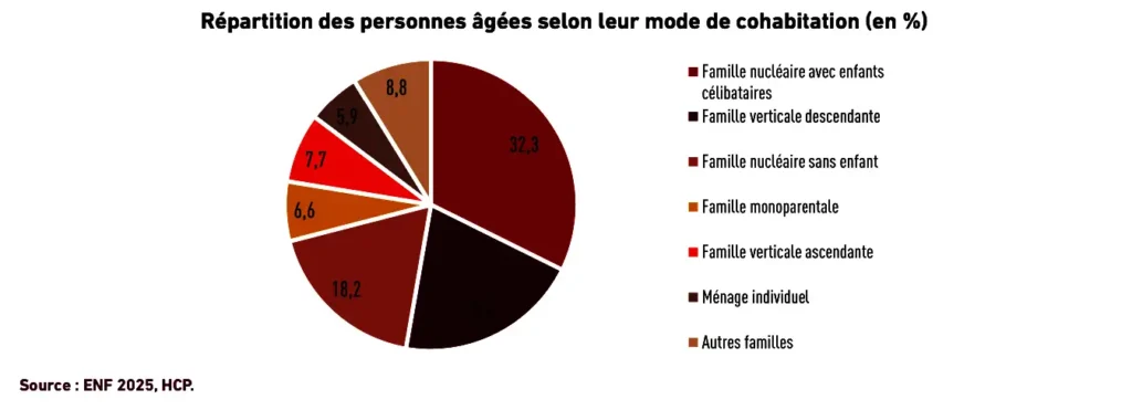رغم التحولات، تظل الأسرة الإطار الأساسي لعيش كبار السن، حيث يقيم 59.3% منهم مع أحد الأبناء على الأقل.